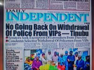 Below are pictures of three newspaper headlines. They are all related to the recent Nigerian presidential order to withdraw police and military protection escorts from so-called Very Important Persons (VIPs)
